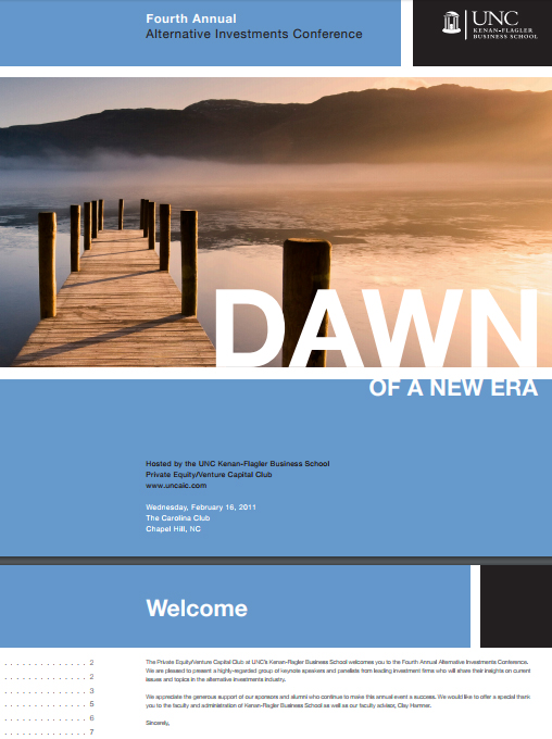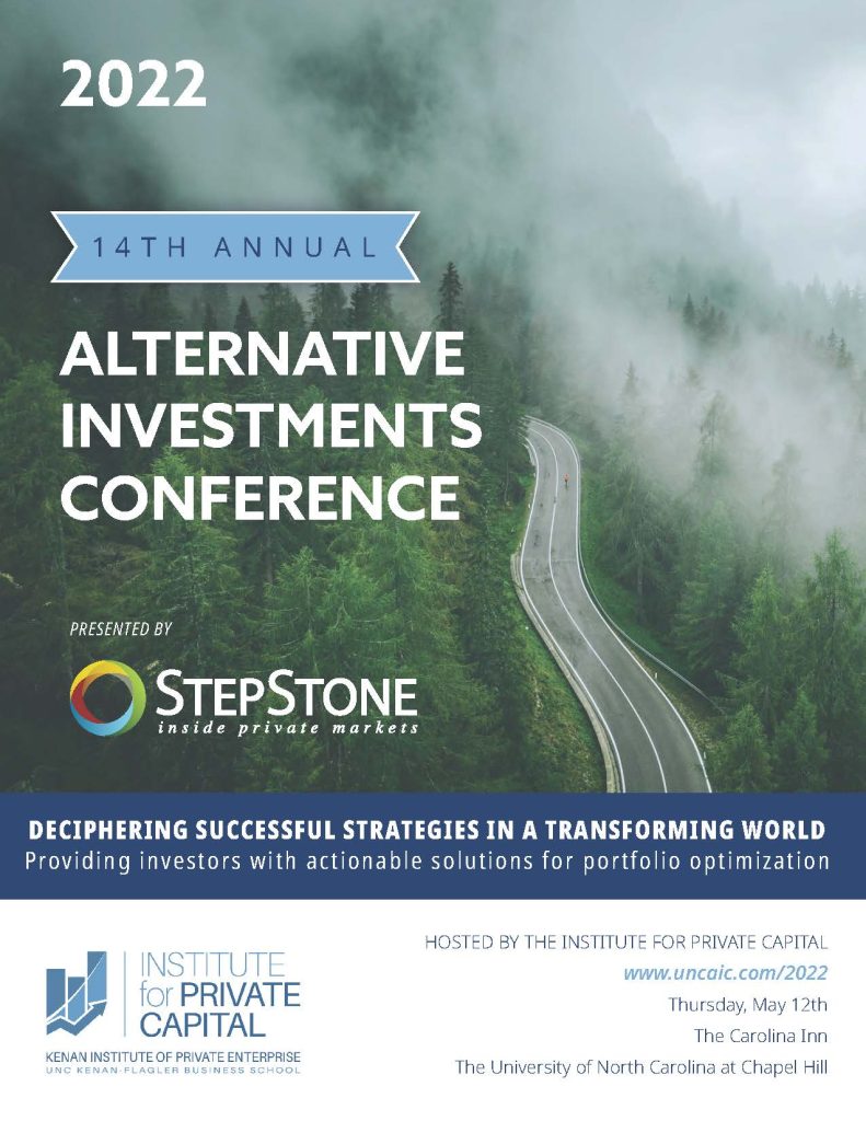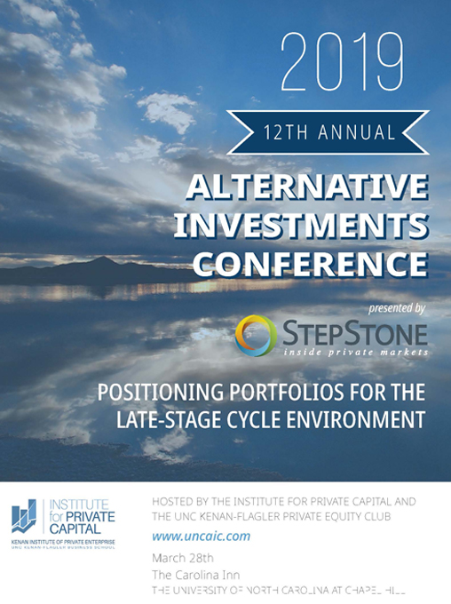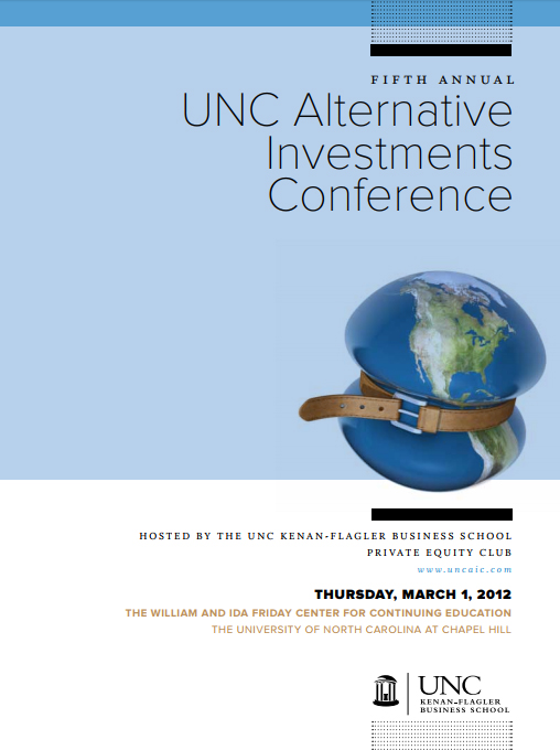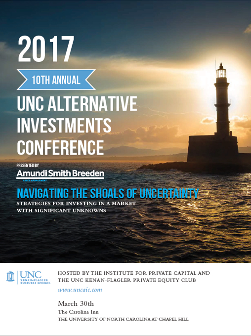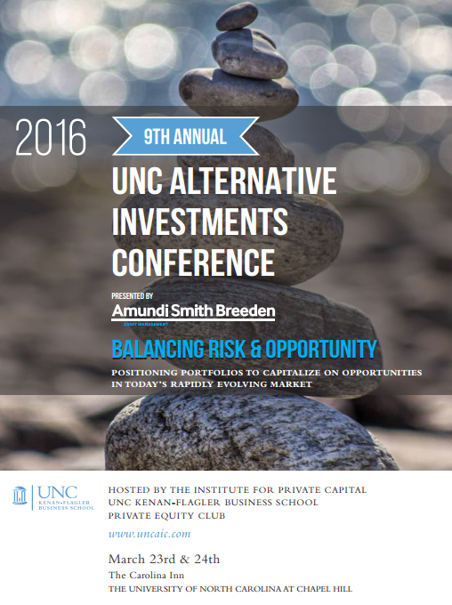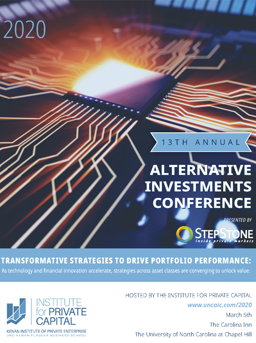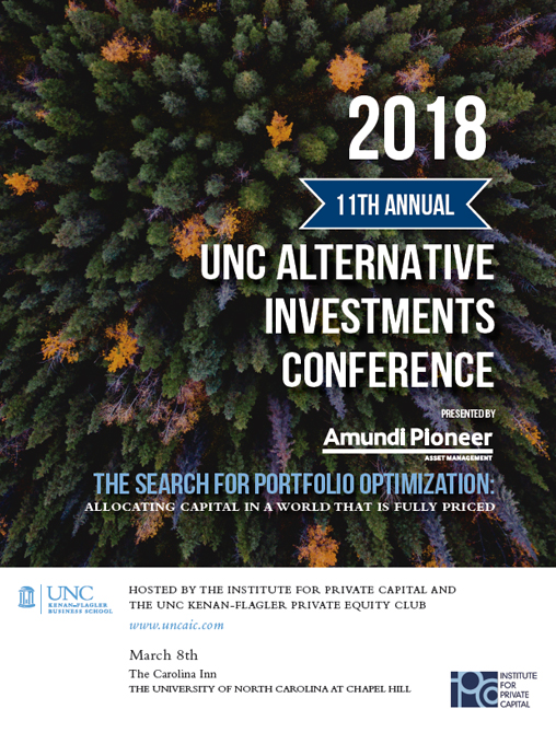 Since 2008, the Alternative Investments Conference has served as a forum for private equity, hedge fund, venture capital, and other alternative asset professionals to network, share ideas, and stay abreast of industry trends. The conference provides insights into current topics in alternative investments as well as the opportunity to meet and learn from some of the most influential industry leaders. The UNC Alternative Investments Conference is sponsored by the Institute for Private Capital at the University of North Carolina at Chapel Hill.